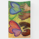 Art inspirant avec des coeurs arc-en-ciel colorés avec des mains diverses tendant vers l'amour. L'art est un hommage au pouvoir de guérison de donner et de recevoir l'amour dans nos vies. Les images de coeur et de main sont dessinées et peintes avec des médias mixtes, dont le pastel.