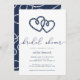 Nos invitations à la douche nuptiale chic côtier sont dotées d'une palette de couleurs bleu marine et blanc classique, avec deux coeurs entrelacés formés d'une corde nautique nouée. Personnalisez avec vos détails de douche nuptiale sous une combinaison chic de lettres serif et sans serif. Parfait pour les douches nuptiales à thème nautique, été ou plage.