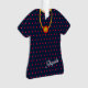 Robe aux coeurs rouges parsemée sur un arrière - plan bleu foncé, ornée d'un mignon pendentif doré, présente le nom de votre ou de votre proche. Au dos est conservé le texte de Noël et l'année.