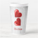 Profitez de votre café du matin ou du soir avec une Mug Latte personnalisée aux Coeurs rouges. Le design de la moquette comprend une paire de coeurs, une vigne feuillue blanche molle contre un arrière - plan gris clair avec une zone à personnaliser avec votre nom. Autres cadeaux disponibles avec ce design ainsi qu'une variété de couleurs.