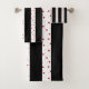 Bandes verticales en noir et blanc motif avec motif de coeurs rouges.