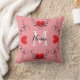 Cœurs rouges sur un oreiller rose avec une molette noire, monogramme et nom au centre, oreiller. Conception - HAMbyWhiteGlove aka HAMbWG. Housse de couette et taies d'oreiller assorties vendues séparément