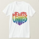Ce t-shirt présente le message "coeurs unis" dans un vif dégradé arc-en-ciel. Chaque lettre éclate avec une couleur différente, créant un message d'unité et d'inclusion.