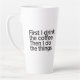 A clean, modern coffee mug featuring a minimalist black and white design.