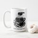 This vintage-style black and white illustration captures the essence of coffee culture, showcasing a cup overflowing with freshly ground coffee beans. The phrase "Rise and Grind" beneath the image serves as both a motivational reminder and a nod to the daily ritual of brewing a fresh cup of coffee. The hand-drawn design emphasizes the rich texture and detail of the beans, making it perfect for coffee lovers, morning enthusiasts, or anyone who appreciates the artistry behind a good cup of coffee. This graphic embodies both the literal process of grinding coffee beans and the metaphorical idea of starting your day with energy and focus.