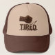 Cette casquette audacieuse et créative présente un poing puissant fait de grains de café torréfiés, écrasant littéralement le mot "FATIGUÉ.