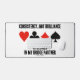 Montrez exactement ce que vous recherchez dans un partenaire de pont avec ce tapis de bureau de dire avec les quatre costumes de carte avec la description suivante : "Consistency, Not Brilliance Is Desashed In My Bridge Partner". Faites une double prise avec une dose d'humour de pont la prochaine fois que vous jouez de pont avec votre partenaire de pont avec ce tapis de bureau. Un rappel mémorable de ce qui est nécessaire dans un partenariat de ponts!