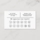 Voici Comb Hair Stylist Haircoms Flat Loyalty Card, la façon idéale de récompenser vos clients fidèles et de les garder revenir pour plus. Conçu avec style et professionnalisme, notre carte de fidélité présente un design élégant avec un motif peigne, symbolisant votre expertise en coiffure. La carte est plate et facile à porter dans un porte-monnaie ou un porte-monnaie, ce qui permet aux clients de garder trace de leurs récompenses. A chaque visite, les clients peuvent gagner des timbres ou des poinçons sur leur carte de fidélité, en travaillant pour un service gratuit ou à rabais. Cela incite les clients à revenir dans votre salon pour tous leurs besoins en soins capillaires. Imprimées sur des cartes de fidélité de haute qualité, nos cartes de fidélité sont durables et personnalisables avec vos coordonnées, ainsi que des détails sur votre programme de fidélité. Ils sont l'outil parfait pour fidéliser la clientèle et développer votre entreprise. Que vous soyez spécialisé dans les coupes de cheveux, la coloration, les reflets, le style ou tout ce qui précède, notre Coiffeuse Coiffeuse Loyauté Flat est la façon idéale de montrer votre appréciation à vos clients estimés et de les garder à l'oeil.