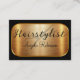 Cartes de visite de rendez-vous de coiffure classe et brillants créés avec un ton or graphique haut de gamme arrière - plan et votre nom et votre profession affiché dans élégante écriture de calligraphie style lettering qui vous présente comme un vrai coiffeur professionnel.