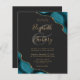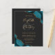 Une aquarelle bleue turquoise aquarelle design taillée avec parties scintillant faux or apparaît dans deux coins de cet élégant design. Personnalisez-le avec les noms du couple en écriture manuscrite de couleur or sur une grande carte grise. Ajoutez les détails du mariage en cuivre doré et en polices italiques sur un arrière - plan noir en ardoise. L'envers offre de l'espace pour les détails mariages sur un arrière - plan noir en ardoise solide, ainsi qu'un code QR que les invités peuvent scanner pour visiter votre site Web et RSVP. REMARQUE : Les enveloppes ne sont pas automatiquement incluses dans ces invitations budgétaires, alors n'oubliez pas de choisir l'option "enveloppes blanches" !