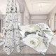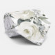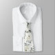 Une cravate de mariage blanche avec des fleurs blanches peintes à l'aquarelle de pivoines et de roses avec de la verdure d'eucalyptus argenté.