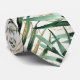 Un élégant col cravate mariage tropical peint à l'aquarelle avec des feuilles de palmier majesté vertes et des frondes dorées sur un fond écru naturel.