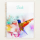Planificateur quotidien coloré, avec des graphiques aquarelle d'un colibri abstrait et des fleurs. Personnalisez le texte personnalisé aqua pour vous-même ou comme une excellente idée cadeau pour elle.