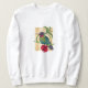 Sweatshirt avec illustration de colibri et de bandes d'or verticales.