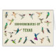 Le Lone Star State possède une variété extraordinaire de colibris. Les amateurs de colibri trouveront les cocotiers et les colibris à la chèvre noire, les Anna's, Allen's, les colibris à la gorge bleue et les colibris à queue large, les colibris à ventre cassé, les colibris à la ligne de Berylline, le calliope, le lucifer et les colibris de Rivoli, ainsi que les roux, et des colibris à oreilles blanches dans différentes parties du Texas à différentes époques de l'année. On a aussi vu des colibris mexicains de Violette, des colibris couronnés de Violet, des Mango à la poitrine verte et des colibris à gorge d'Améthyste. Les images sont tirées des aquarelles originales de Christiane Dobbins.