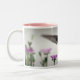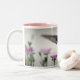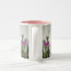 Des fleurs et un colibri s'étirent autour d'une tasse à deux tons.