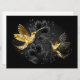 Colibris de bijoux en noir et or sur arrière - plan gris décoré de plantes. Bijoux. Oiseau doré. Oiseau d'or.