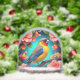 Un chansonnier vivant au plumage vif se dresse gracieusement au milieu de fleurs colorées, dressées contre un arrière - plan bleu radieux. Le contraste enchanteur met en valeur le charme naturel gai et vivant de la scène.