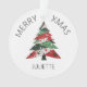 Comprend un arbre de Noël collage dans une palette de couleurs rouge et vert. Personnalisez avec un nom sur le devant, et un nom "de" sur le dos.