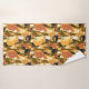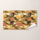 Serviette sertie dans une collection de chats mignons, dans différentes nuances d'orange, de noir et de blanc, disposés contre un arrière - plan brun chaleureux. De petits coeurs et des accents floraux sont entrecoupés, apportant une touche de fantaisie.