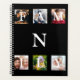 Personnalisé avec monogramme plan personnel avec 6 espaces photo collage et typographie de nom. Tout de noir. Ajoutez vos photos préférées sur ce planificateur élégant.