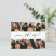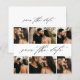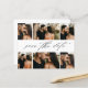 Collage de photos de mariage à budget script Enregistrer la date avec une belle calligraphie script sur le devant. Le dos comporte les noms des couples, les détails du mariage et le site Web. Cliquez sur le bouton modifier pour personnaliser ce design.