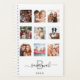Créez votre propre collage de photos de famille unique en cadeau ou pour vous-même. Utilisez quatre, 9 de vos photos préférées de votre famille, de vos amis, de votre destination de voyage de rêve ou de votre animal de compagnie ! Personnalisez et ajoutez un nom, votre lettre de monogramme et une année. Le nom est écrit avec un style de lettre manuscrit moderne avec des fioritures. Texte noir et gris. Un fond blanc moderne et chic. Pour conserver les fioritures, supprimez simplement le nom de l'exemple, laissez les espaces ou les émojis devant et après le nom.
