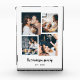 Ce bloc photo simple mais ultra moderne dispose de quatre de vos photos personnelles préférées dans une grille photo à look unique et superposé. Le design noir et blanc présente votre nom de famille en typographie manuscrite élégante et tendance, et a une place pour l'année établie dans une coordination sans serif police.
