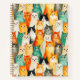 Journal dans un collage de chats dans différentes nuances d'orange, blanc, gris, beige, noir et blanc. Chaque chat a une expression distincte, allant du curieux au contenu. Le style aquarelle et la répétition créent un motif animé et ludique.