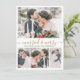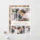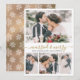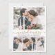 Calligraphie moderne élégante Calligraphie blanche et or Calligraphie 4 Collage de photos Marié et Joyeuse carte de Noël. Cette carte de noël mimimaliste festive et mariée comporte quatre (4) photos de grille et le texte de salut "Marié et Joyeux" qui est écrit dans une belle tourbillonnant lettre à la main type de police swash-tail en or et blanc. Sur le côté arrière, de jolis flocons de neige enneigés sur arrière - plan de fausse feuille d'or. Jolies cartes de voeux moyen facile d'envoyer des salutations à la famille et les amis pour votre premier Noël en tant que mari et femme en période de Noël.