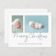 Carte de Budget 2 Photo Collage Bébé Premier Noël. Une alternative BUDGETAIRE économique dans un format plus petit de 4,5 x 5,6” sur papier semi-brillant de 110lbs, d'une épaisseur similaire à celle d'une carte postale (mais ne peut être utilisée comme carte postale). VEUILLEZ NOTER qu'il y en a UN par feuille. Remplacez simplement les deux exemples de photos par les vôtres et personnalisez avec votre message et vos noms en bas. Joyeux Noël est écrit dans un style élégant.