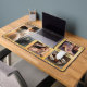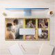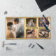 Un tapis de bureau avec un modèle pour 5 de vos propres photos encadrées par une parties scintillant dorée. Beau comme gardien de votre mariage ou pour un wedding planner.