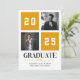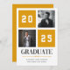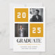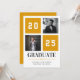 Célébrez le jalon de votre diplômé avec ce faire-part de graduation de collage photo moderne jaune. Ce design comporte deux espaces réservés aux photos et une mise en page audacieuse et variée avec l'année affichée en évidence. Customisez-le avec le nom de votre diplômé et le lycée. Une façon élégante et contemporaine d'annoncer leur réalisation !