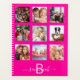 Faites votre propre collage photo de famille unique en cadeau ou pour vous-même. Utilisez quatre, 9 de vos photos préférées de votre famille, amis, destination de voyage de rêve ou animal de compagnie! Personnalisez et ajoutez un nom et votre lettre monogramme. Le nom est écrit avec un script de style moderne écrit à la main avec des swashes. Un arrière - plan rose chaud tendance. Pour que les swashes ne suppriment que le nom de l'échantillon, laissez les espaces ou émoticônes devant et après le nom.