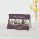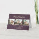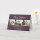 Photo violet moderne sur mesure Joyeuses cartes de Noël avec un collage photo et la chute de neige sur un arrière - plan violet. Personnalisez facilement cette carte de Noël violette avec vos images préférées, un nom de famille et un texte.
