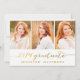 Carte photo de collage manuscrit invitant votre famille et vos amis à la fête de graduation de votre fille. Collage simple | Invitation de la fête des diplômés pour 2014. Design par Elke Clarke © Visitez notre boutique www.zazzle.com/monogramgallery* pour plus de design et de styles. Ajoutez vos propres photos et texte. Une simple typographie de feuille d'or manuscrite écriture de police de texte superposition (effet photo imprimé) avec les mots "Graduate 2014" avec un trois montage photo design. Remplacez l'exemple de photo par le vôtre. Couleurs blanches et or.