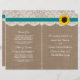 La collection de tournesol rustique est un design époustouflant avec un bel arrière - plan rustique effet burlap avec une coupe en dentelle vintage romantique finie par un superbe tournesol et ruban turquoise. Ces programmes peuvent être personnalisés pour votre occasion spéciale et feraient le modèle parfait pour les mariages, douches nuptiales, fêtes de fiançailles, fêtes d'anniversaire et bien plus encore. *Veuillez noter que Zazzle ne vend que des produits imprimés, de sorte que cet article n'a pas de matériel réel de burlap, dentelle, tournesol ou ruban. AFFICHER LES ÉLÉMENTS CORRESPONDANTS POUR CETTE COLLECTION