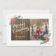 Ajoutez une touche festive supplémentaire à vos salutations de vacances avec ce 1 carte photo, avec des oeuvres de calligraphie en lettrage à la main et des feuilles dessinées à la main, le tout sur un arrière - plan rustique en bois.