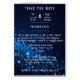 Ce faire-part de mariage présente un design intemporel et élégant, avec des détails étincelants complexes et gracieusement répartis sur l'ensemble. Les délicats pétillants et les vignes créent une esthétique douce et romantique contre un arrière - plan bleu muet, évoquant un sentiment de sophistication et de charme. Parfait pour un mariage d'inspiration classique ou vintage, ce design donne le ton d'une journée pleine de beauté et d'amour.