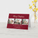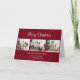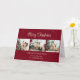 Photo moderne personnalisée rouge Joyeuses cartes de Noël avec un collage photo et la chute de neige sur un arrière - plan rouge. Personnalisez facilement cette carte rouge de Noël avec vos images préférées, un nom de famille et un texte.