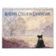 Un paysage d'aquarelle différent de Susan Alison illustre chaque mois. Un chien de la Frontière collie regarde la campagne dans sa vue. La vie est bonne !