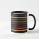 Sip in style with this mug featuring horizontal lines in muted purple, yellow, green, orange, blue, maroon, red, and beige on a sleek black background. Each line varies in thickness for a unique, modern look. Perfect as part of a matching gift set with throw pillows and tote bags, making it a complete stylish collection gift for home or office.