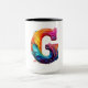 A stylish ceramic mug featuring the artistic letter G in a vibrant splash of liquid colors. Perfect for adding a touch of creativity and color to your morning coffee or workspace. Makes a great gift for art lovers and designers.