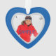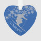 Voici un magnifique ornement pour commémorer cette merveilleuse randonnée à ski dans le Colorado ! L'avant de l'ornement présente un skieur de descente devant un jet de flocons d'argent. Le texte blanc en bas à gauche indique COLORADO. L'image et le texte sont placés sur un arrière - plan bleu cérusé profond. L'arrière de l'ornement est le même bleu, avec votre propre photo à l'intérieur d'un cadre en faux diamant en forme de coeur.