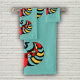 Cet ensemble de serviettes de bain qui comprend une serviette de toilette, une serviette de bain et une serviette de bain sont bleu aqua avec des scarabées égyptiens abstraits qui sont lumineux et colorés en rouge, bleu, jaune et noir. Achetez l'ensemble ou individuellement.