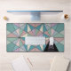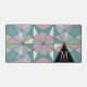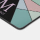 Monogramme Personnalisez avec votre initiale et votre nom personnalisés. Tapis de bureau cool unique pour bureau, chambre, travail, grotte pour homme, atelier, salle de jeux.. Lavande corail bleu vert rétro Mosaic Triangle Motif. Triangles géométriques de différentes nuances cool avec lignes rayées noires.