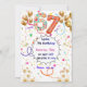 Celebrate a special milestone with this vibrant and joyful 7th birthday invitation design. Featuring large decorative numbers, playful colors, golden balloons, confetti, stars, and gift elements, this invitation creates an exciting party atmosphere that kids love.