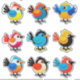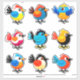 A lively collection of twelve cartoon-style bird stickers in bright colors. Ideal for kids crafts, scrapbooks, or classroom décor, conveying friendship, playfulness, and nature-inspired charm.