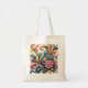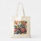 A vibrant tote bag featuring a stylized floral design with swirling leaves and petals in pink, teal, and orange tones. Perfect for everyday use, artistic fashion lovers, or as a unique gift for someone who enjoys bold and colorful designs.