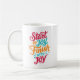 Brighten up your mornings with a boost of positivity! This vibrant coffee mug features the uplifting quote "Start in Joy Finish with Joy" in beautiful, colorful typography. Whether you're sipping your morning coffee or winding down with evening tea, this mug serves as a wonderful reminder to embrace happiness throughout your entire day. Its cheerful design makes it a perfect motivational gift for friends, family, or coworkers who need a little extra sunshine in their routine!